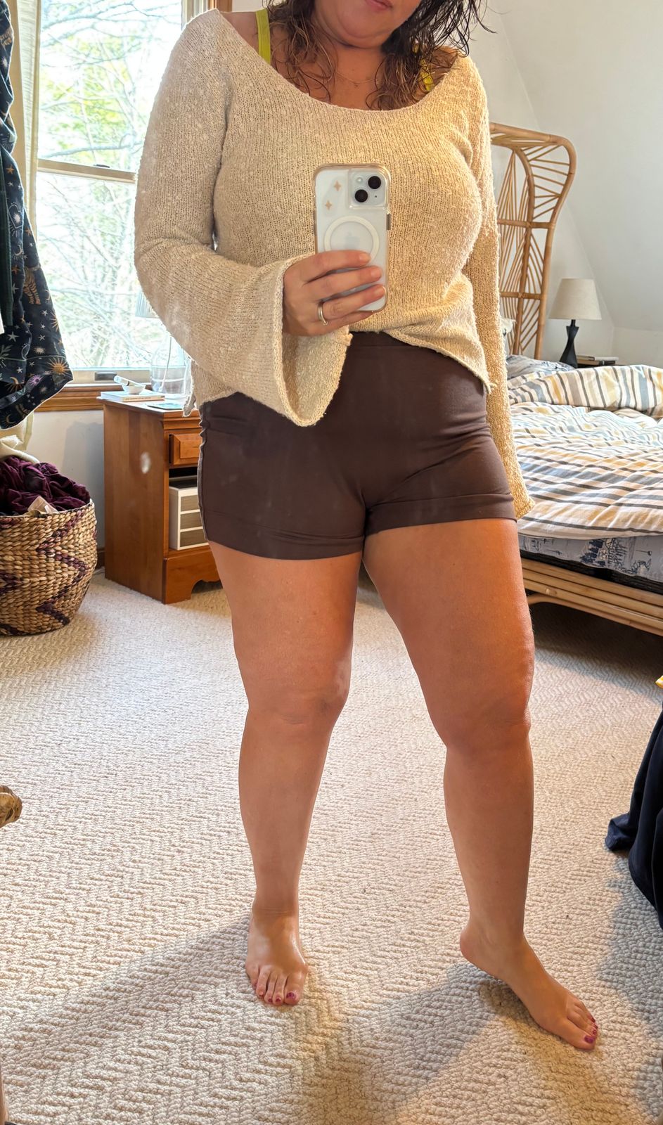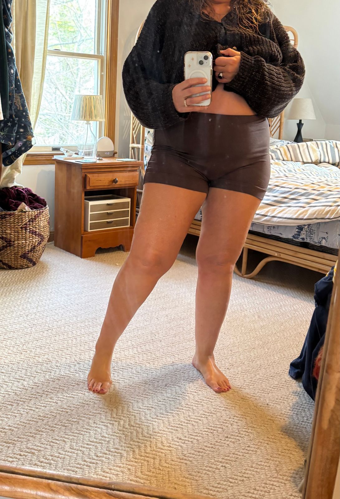 I love that the fabric is thick enough to hold me while also feeling lightweight and breathable. The lining around the thighs is perfectly made so it doesn't roll up. These are perfect for dancing and everyday movement!