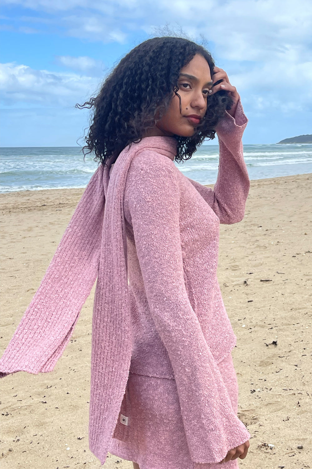 For this knitwear piece, we have hand-blended our gorgeous Cotton Yarn with a touch of leftover acrylic for the softest touch. The feel of the material is completely like our beautiful 100% cotton but we decided to blend it to make the pieces slightly warmer. We don’t use any animal-based fibres in our collections so finding a balance this way for something that will last for years to come.